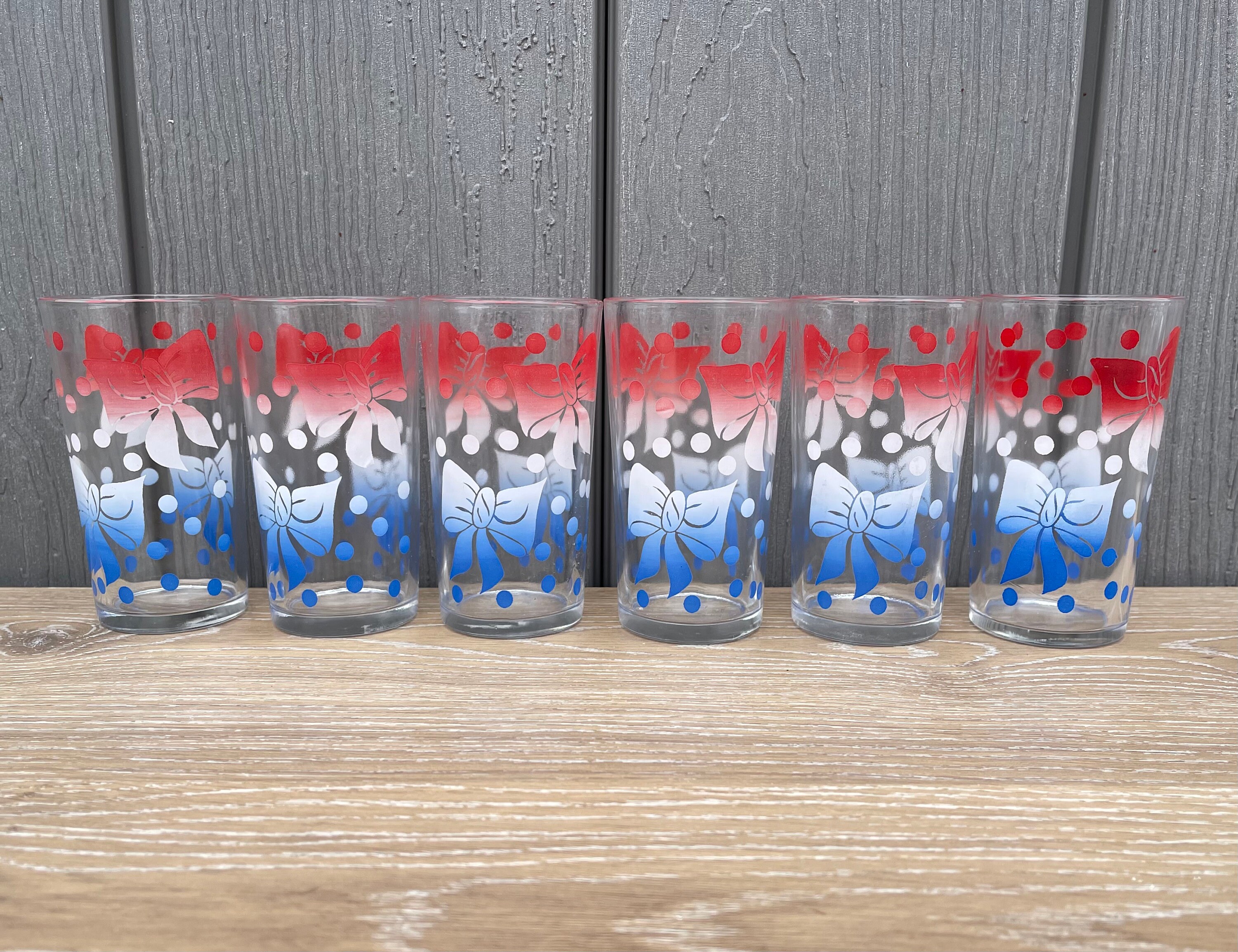 Set Of Six Vintage Red White And Blue Ombre Bow And Polka Etsy Uk