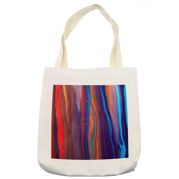 Colorful Tote Bag Close Up Of Oil Painting Design Horizontal Line Composition Abstract Modern Art Cloth Linen Reusable Bag For Shopping Books Beach And More 16 5 X 14 Cream By Ambesonne